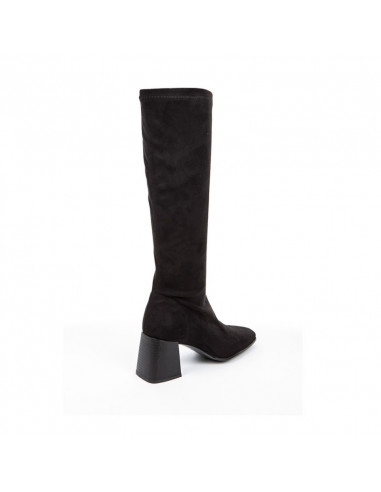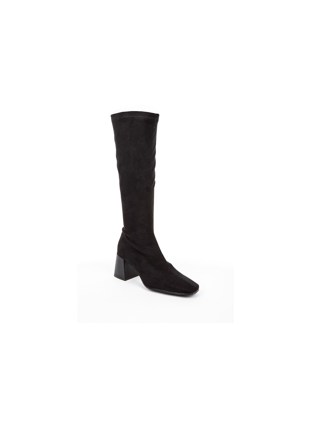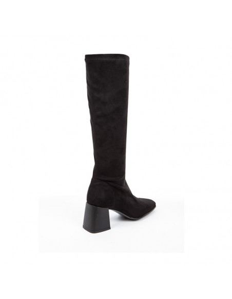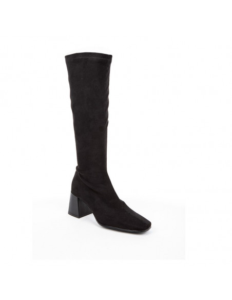 Bota alta elástica en antelina para señora . se adapta como una media a la pierna estilizándola y gracias a su licra es comodísima para pies delicados. altura de aprox 7cm