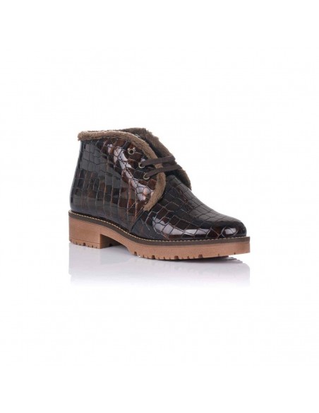 Botín de mujer, realizado en piel coco y forro interior en textil de suave pelo, dando una mayor sensación de calidez y plantilla extraíble. Fabricado en España por la marca Pitillos. Cierre mediante cordones para un mayor ajuste al pie.Características: Termal Super Absorbent. Forro y plantilla transpirable, absorbe el sudor combatiendo la aparición del olor. Además de proporcionar una agradable sensación de confort y bienestar.Medidas: Tacón 3.5 cm