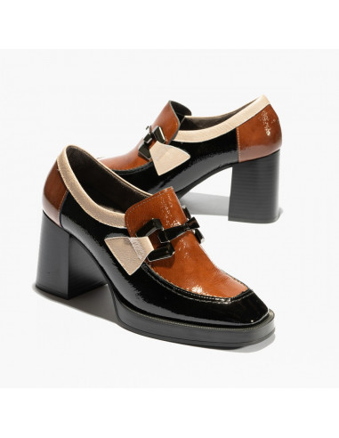 Zapato abotinado para mujer combinaciones en tonos naturales de la colección Otoño-Invierno con plantilla extraíble. Piso tacón alto (tacón 7 cm) (plataforma 1,5 cm) en tpu.