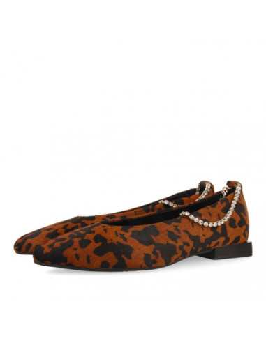 Si buscas darle personalidad a tu look, estas bailarinas son para ti. Bailarinas de punta fina en piel con estampado de leopardo y pulsera de cristales ajustable con un mini cierre. Planta en piel y acolchada de látex. Forro en piel y piso muy flexible.