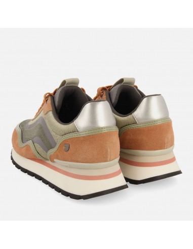 Sneakers color teja de piel con contrastes. La combinación de tejidos crea un original juego de texturas. Cuentan con entresuela de EVA y plantilla anatómica, extraíble y con sistema Gio Memory Effect.